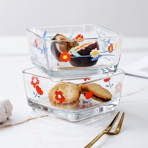 Creatividad Linda Margarita flor Tulipán flor ensalada cuadrado Grado alimenticio vidrio Postre aperitivo tazón para cocina hogar