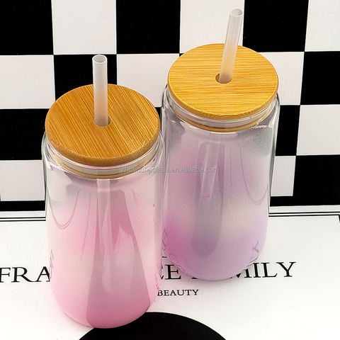 وصل حديثًا التسامي أومبير فارغ من الزجاج المتدرج كوب بيرة مصنفر مع غطاء من الخيزران والقش